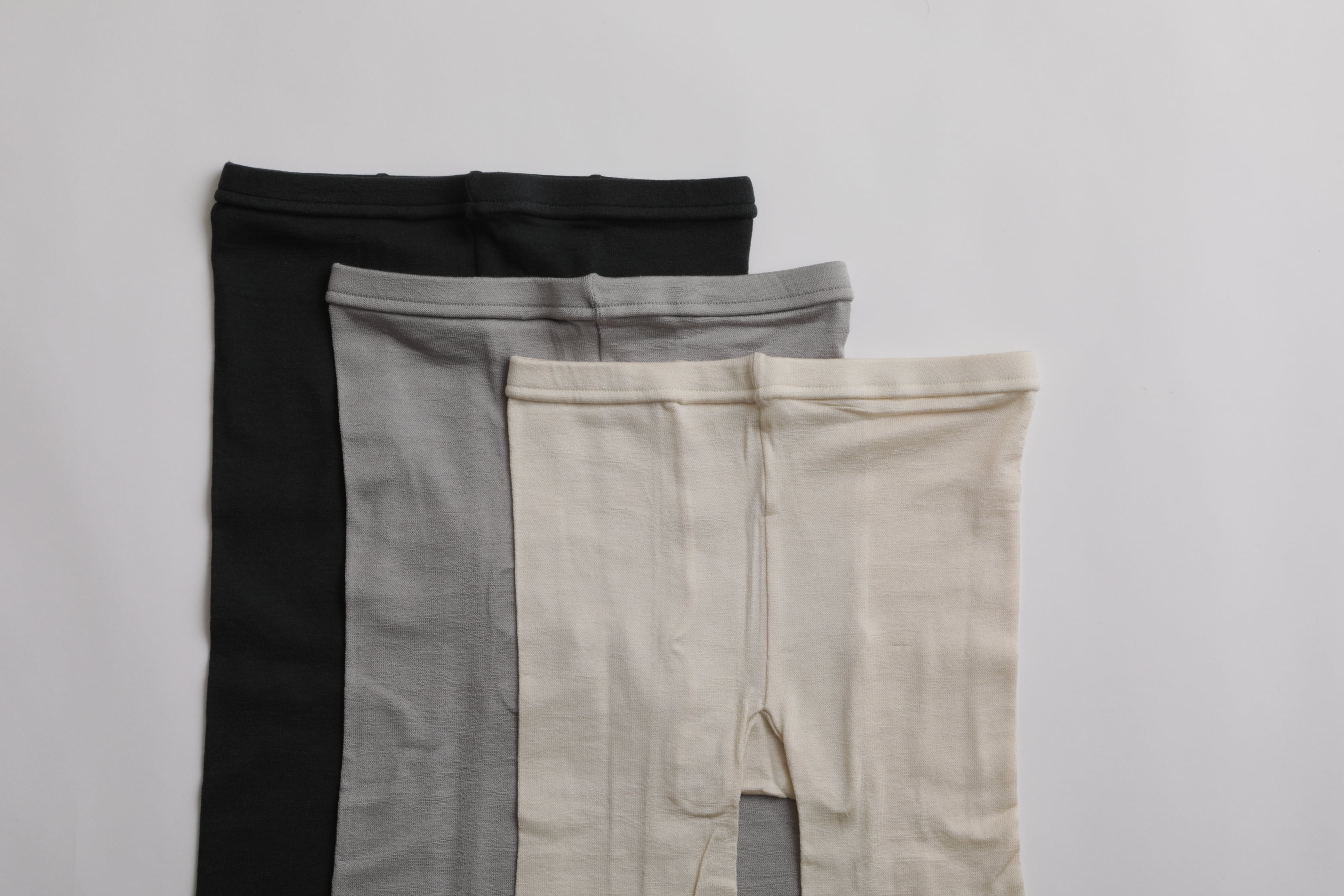 ボトムのインナーに履いていただける薄手の10分丈。肌に接する部分(内側)はシルク100%の糸を使用し、吸湿・吸汗性に優れ、さらりとした履き心地が特長です。