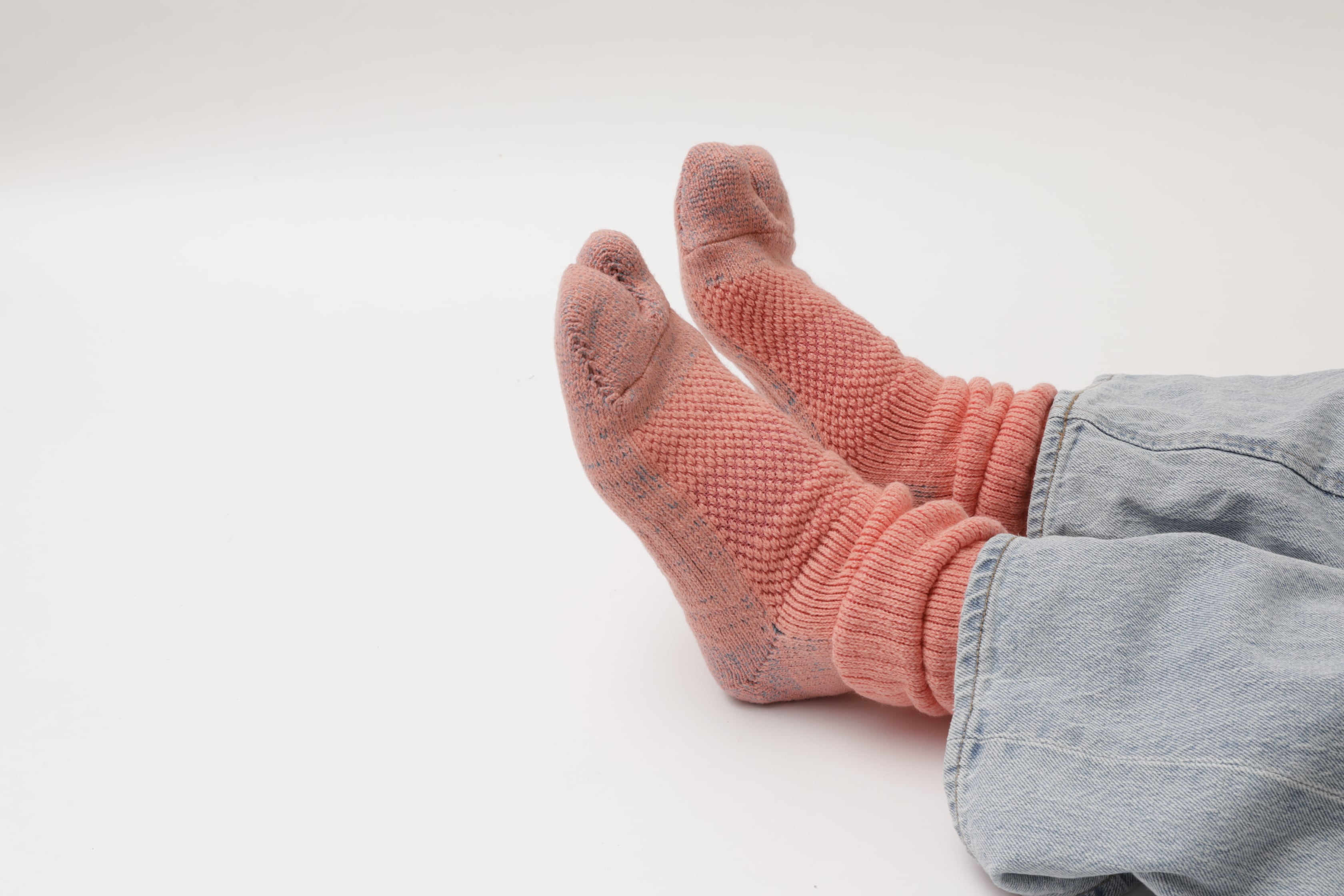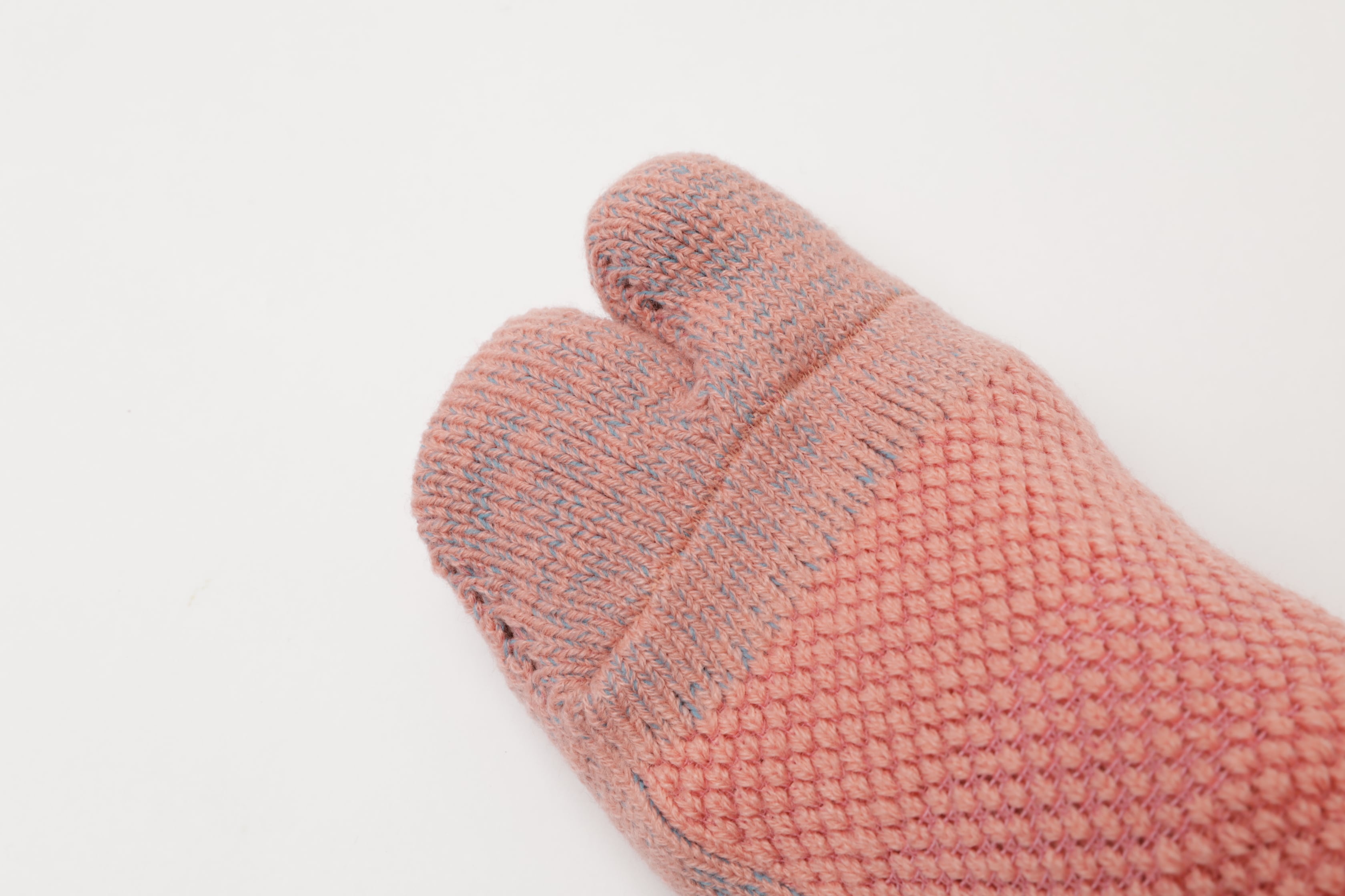 足先が二つに分かれている足袋型はデザインのかわいさに加えて、足の指が自由に動き、しっかりと使えるようになるので姿勢や歩き方、外反母趾、冷え性の改善といったメリットも。