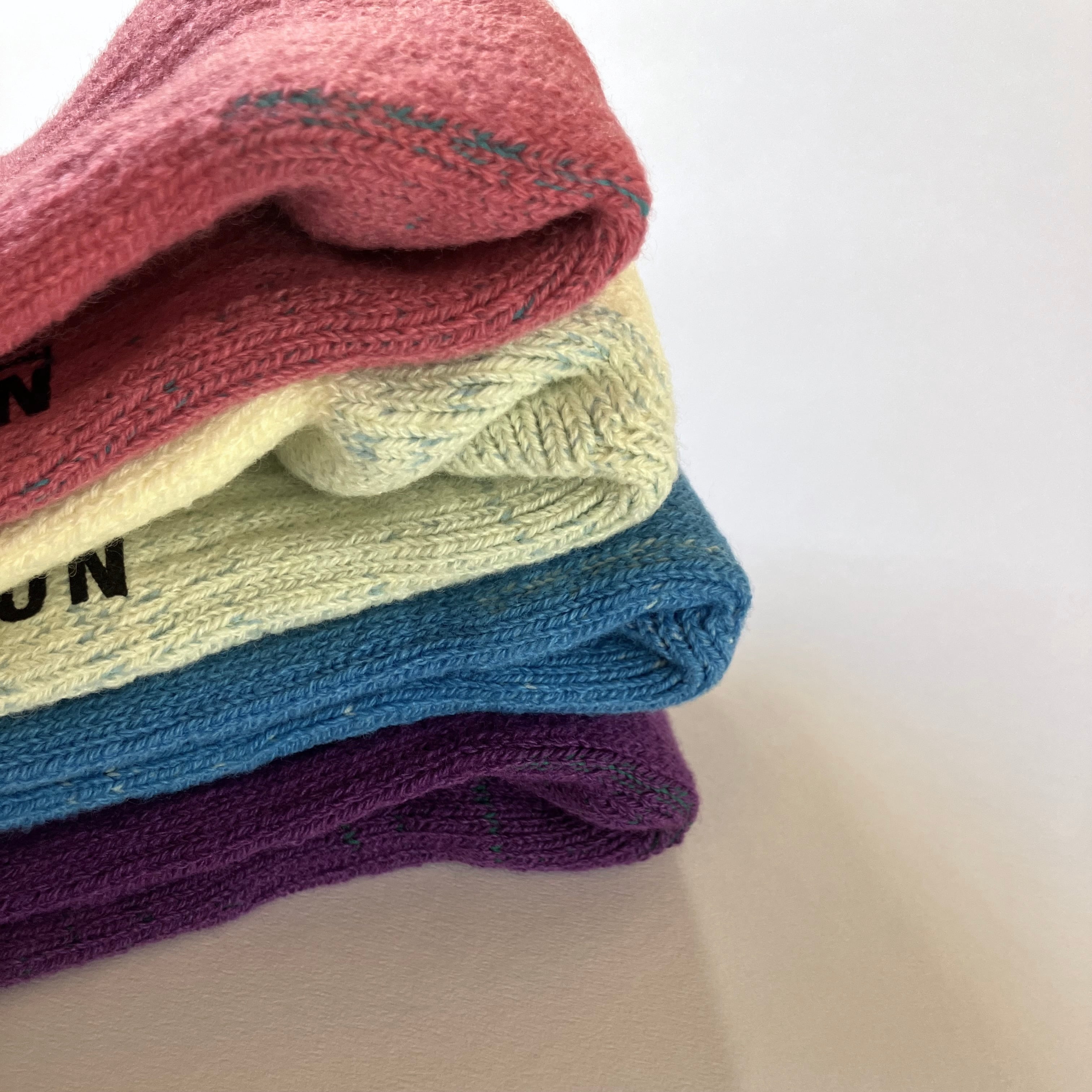 ウールの特性上、着用や洗濯等の摩擦による表面の毛羽立ちやピリング(毛玉)は避けられません。美しい状態で長く履かれたい方は手洗い推奨。洗濯機の場合は、裏返してネットに入れ、中性洗剤を用いてソフトコースなどで洗ってください。また、乾燥機のご使用・高温での洗濯は大きく縮む原因となるためお控えください。