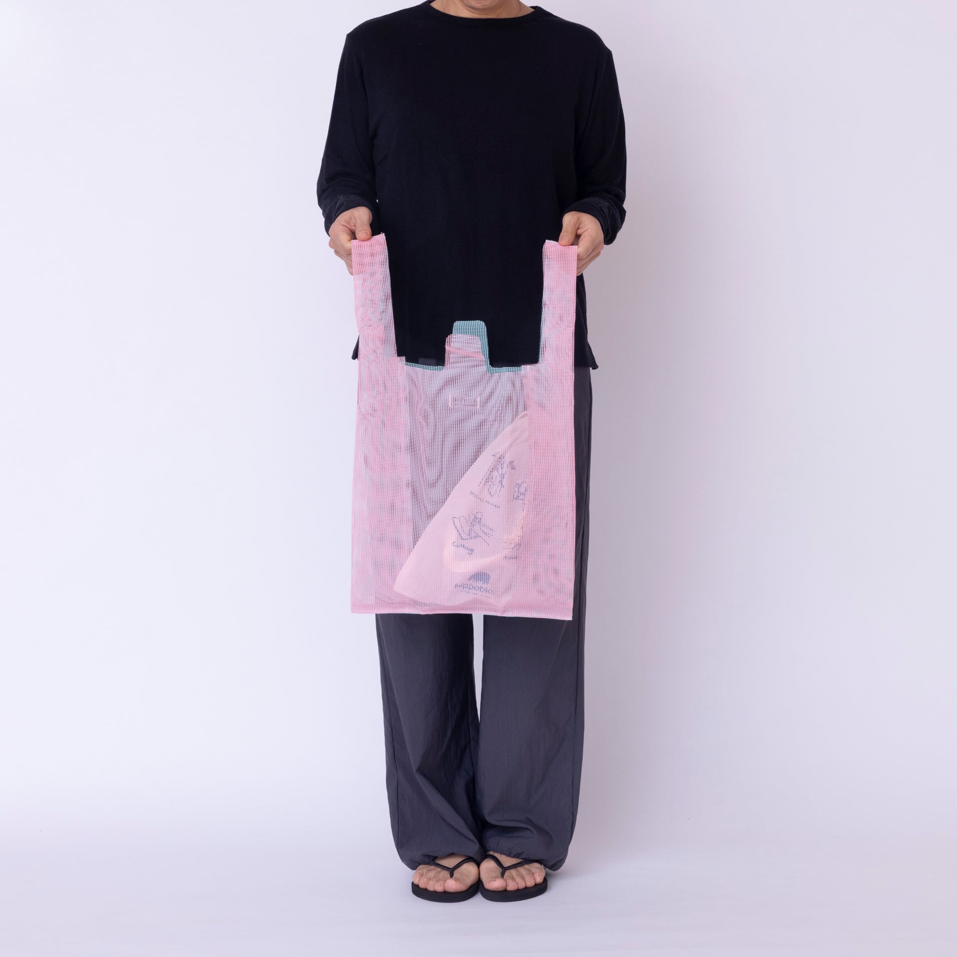 デザインのベースはコンビニ袋。一般的なショッパーよりもひとまわり大きく、荷物がたっぷり入ります。「レジ袋使用削減のため、丈夫で長く使える袋を」との発想から作られているため、かなり丈夫です。かつ水に濡れてもOKですので、海でプールでサウナでがしがしお使いください。専用パッケージ付き。
