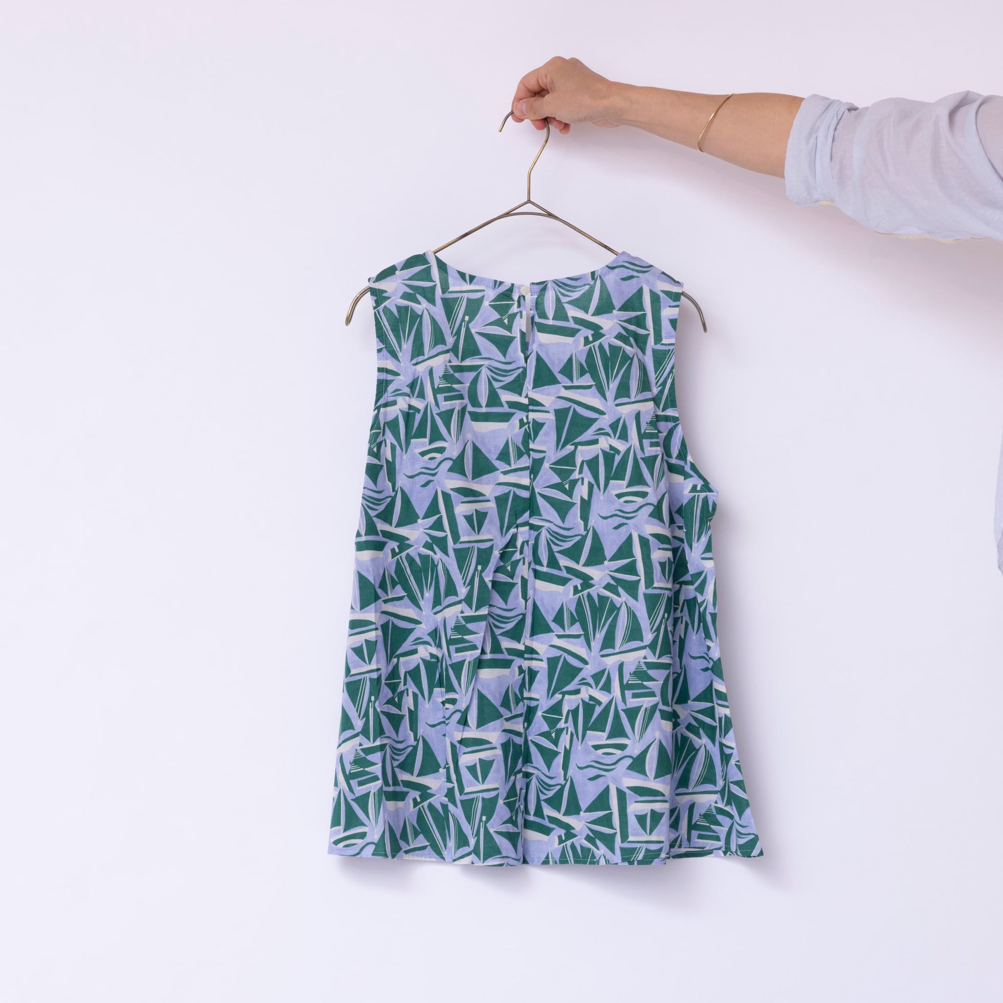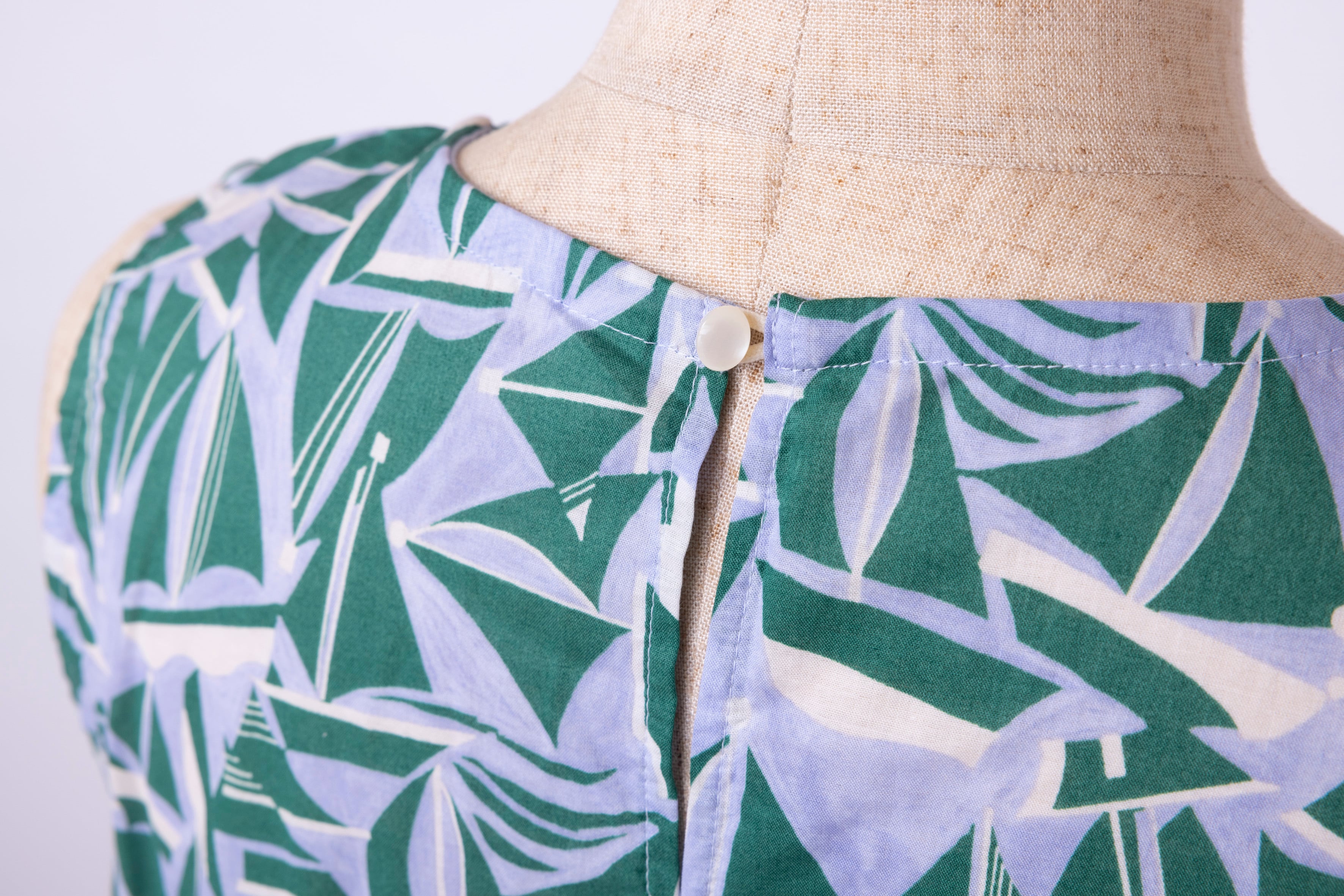 こちらはフレアをたっぷり入れたノースリーブトップス。カラーはグリーンとブラックの2色展開。波やヨットがレトロなカラーリングで表現されたリゾート感のあるアイテムですので、夏のお出かけにぜひ。