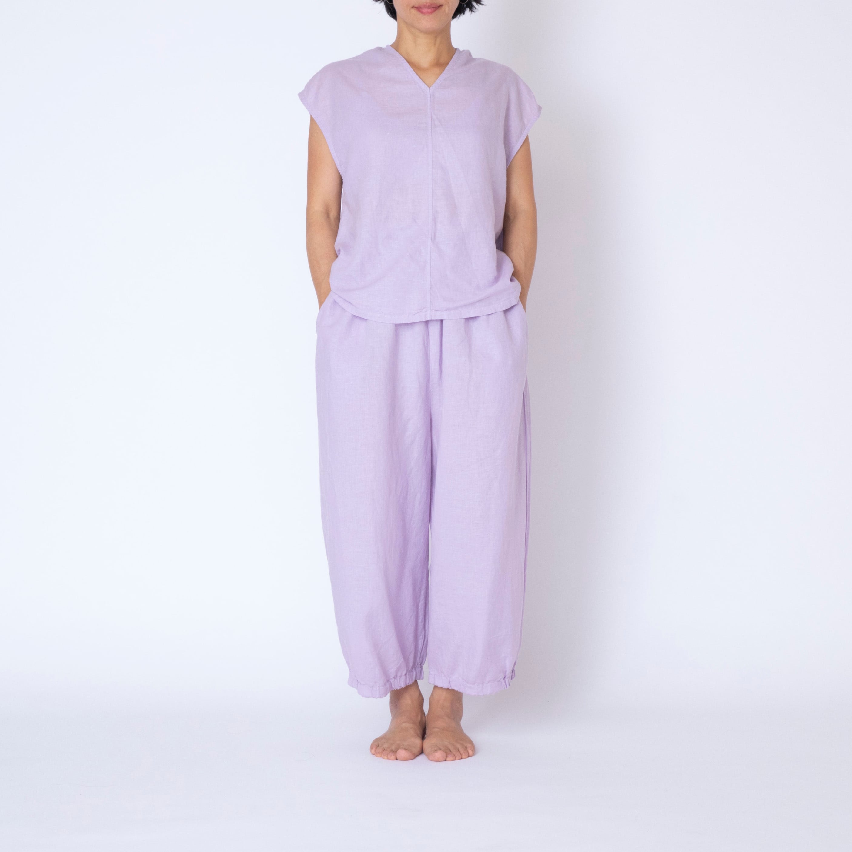 プルオーバーは、VネックとUネック前後2wayで着られる仕様。フレンチスリーブで二の腕も安心です。暑い夏にもさらりとまとえて、一枚あると本当に重宝していただけると思います。